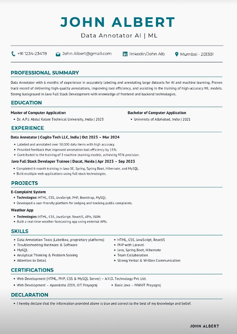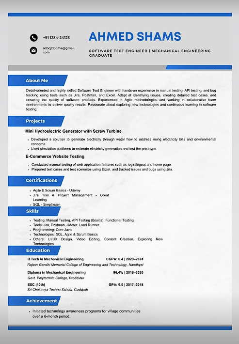 ✅ ATS-friendly format (works on job portals-Naukri.com, Linkedin, & Others)